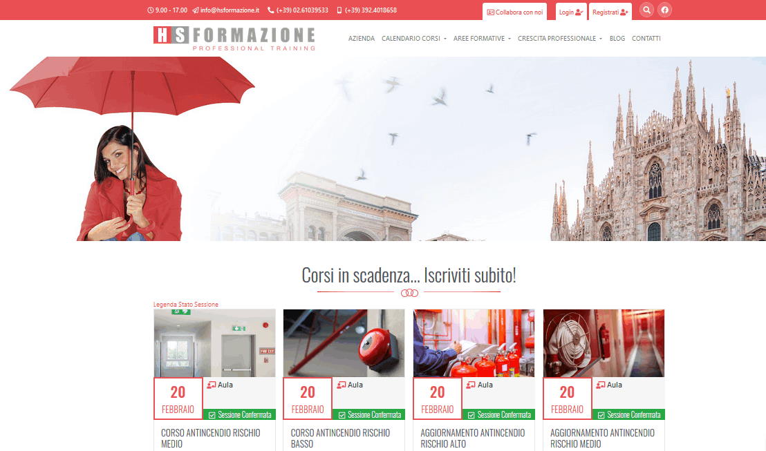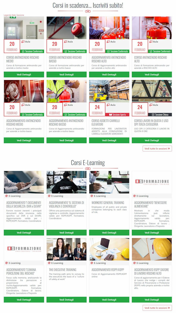 Offriamo un ampio catalogo online di corsi sulla sicurezza con numerose date disponibili. Acquistabili nella nostra area dedicata: HS FORMAZIONE